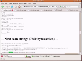 The harvested data contains various information including parts of other websites, users "favorites" and history, and other information.